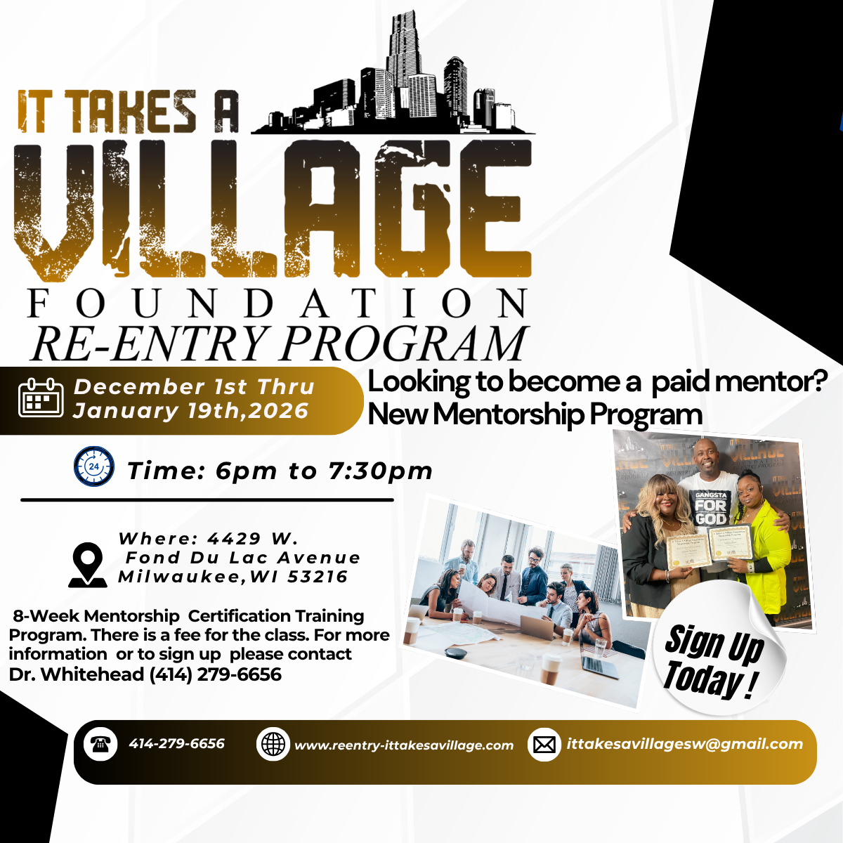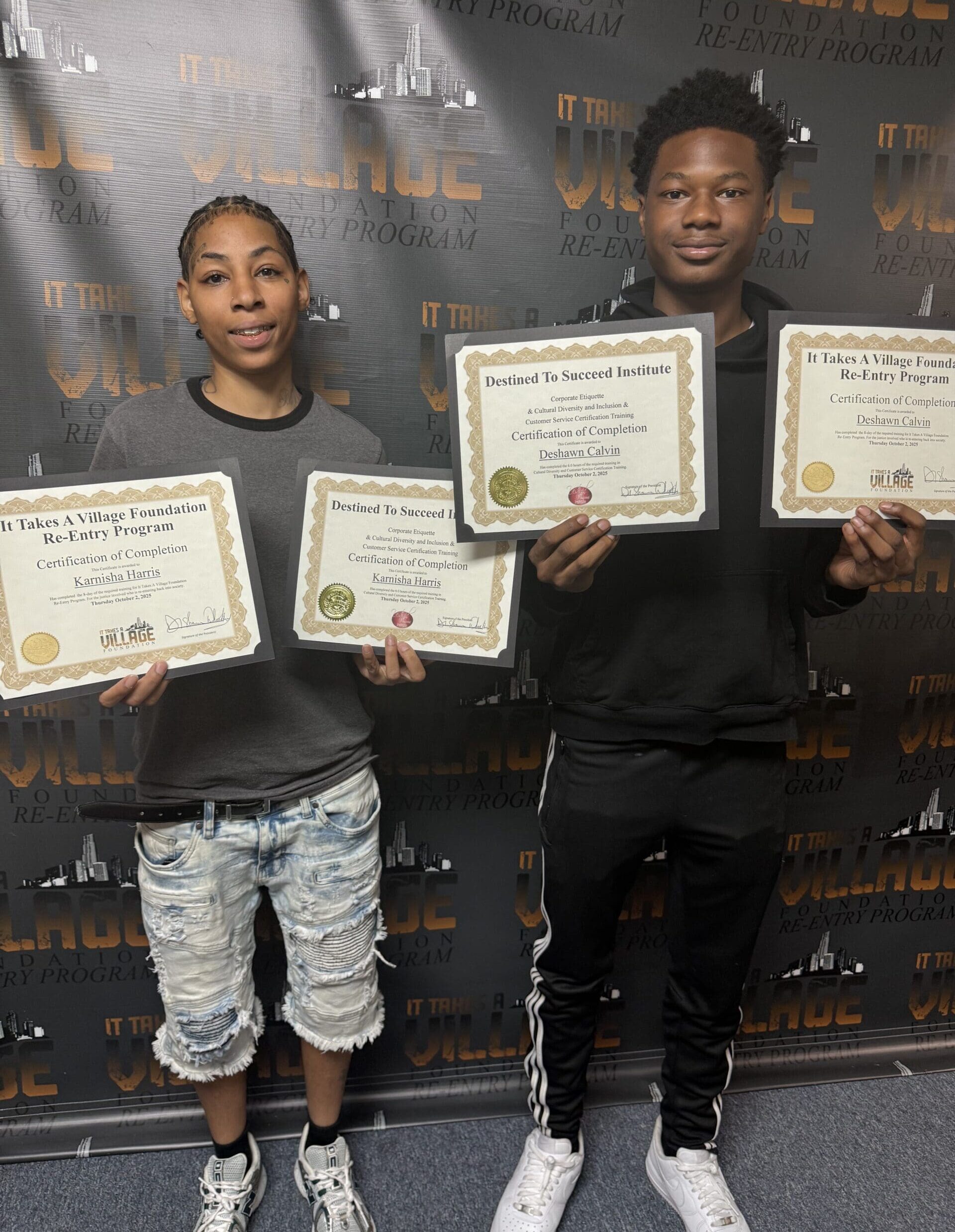 All graduates will receive job readiness certifications and a completion certificate for completing the these courses. The It Takes A Village Foundation Reentry Program is now in 7 correctional facilities throughout Wisconsin.